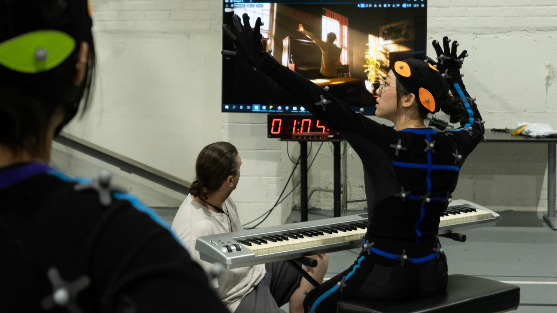 The characters in these scenes are custom sculpted Metahuman avatars to match the live action actors. Using Optitrack motion capture and motion builder, we can retarget our actors' movements to these avatars. The virtual environment is modeled in Blender and Substance Designer to replicate the space.