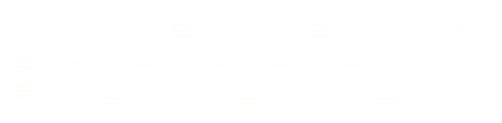 This screen-based interactive film alternates between live action shot sequences and virtual 3D gameplay. The live action scenes depict reality, centering around the domestic drama and tension between father and daughter, while the virtual sequences explore the subconscious mind and glimpses of the memories of our characters. These are stylized dream sequences where the audience will become an active participant that can interact with artifacts and memories that tell a deeper story.