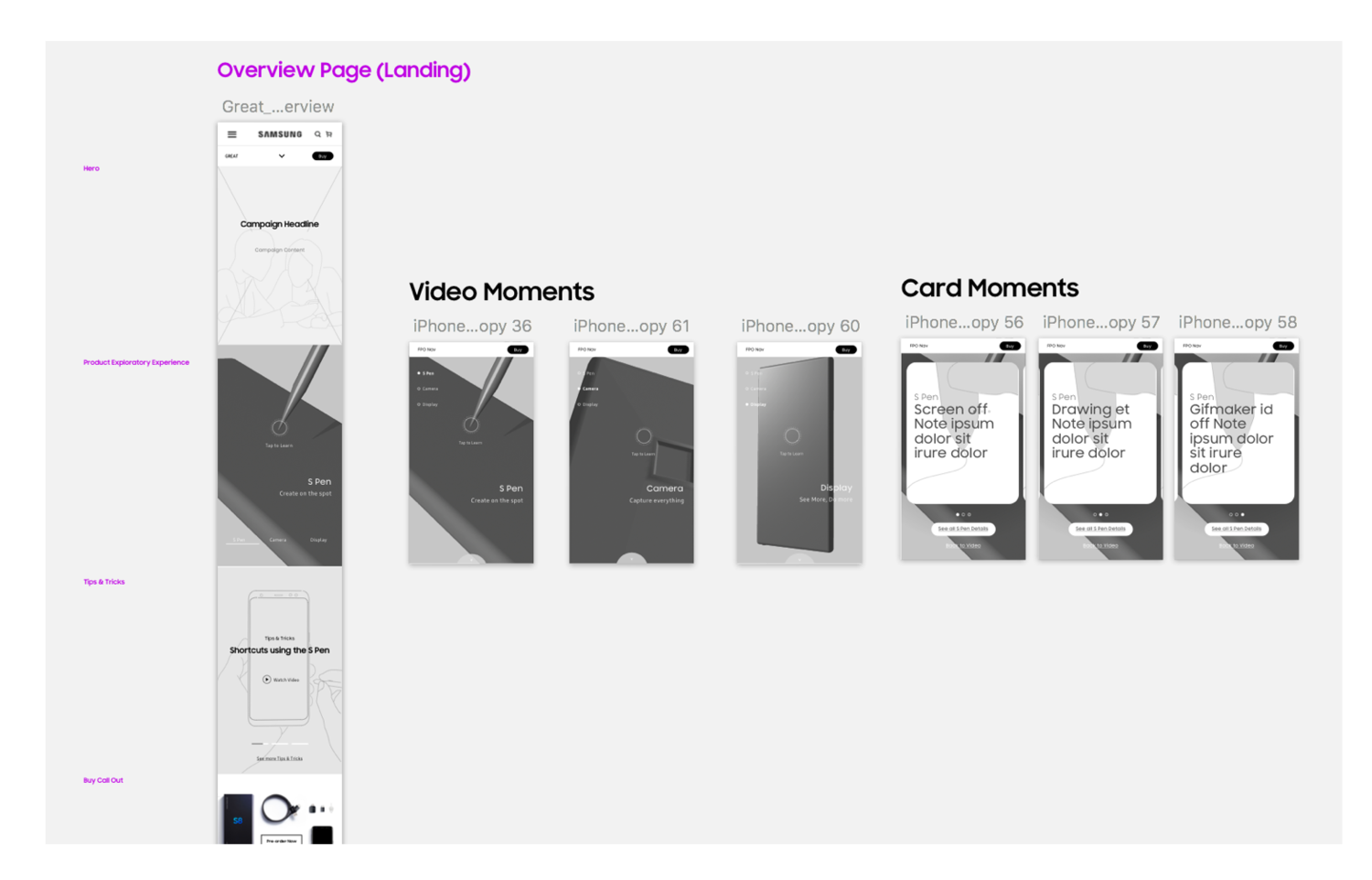 We worked on the family of pages for the launch of the Note 8 (codename “Great”). This included a landing page, feature pages, compare pages, switchers pages, and additional pages targeted at specific users. Our goals were to create a dynamic experience that made the highly informational pages more engaging and relevant to the users.